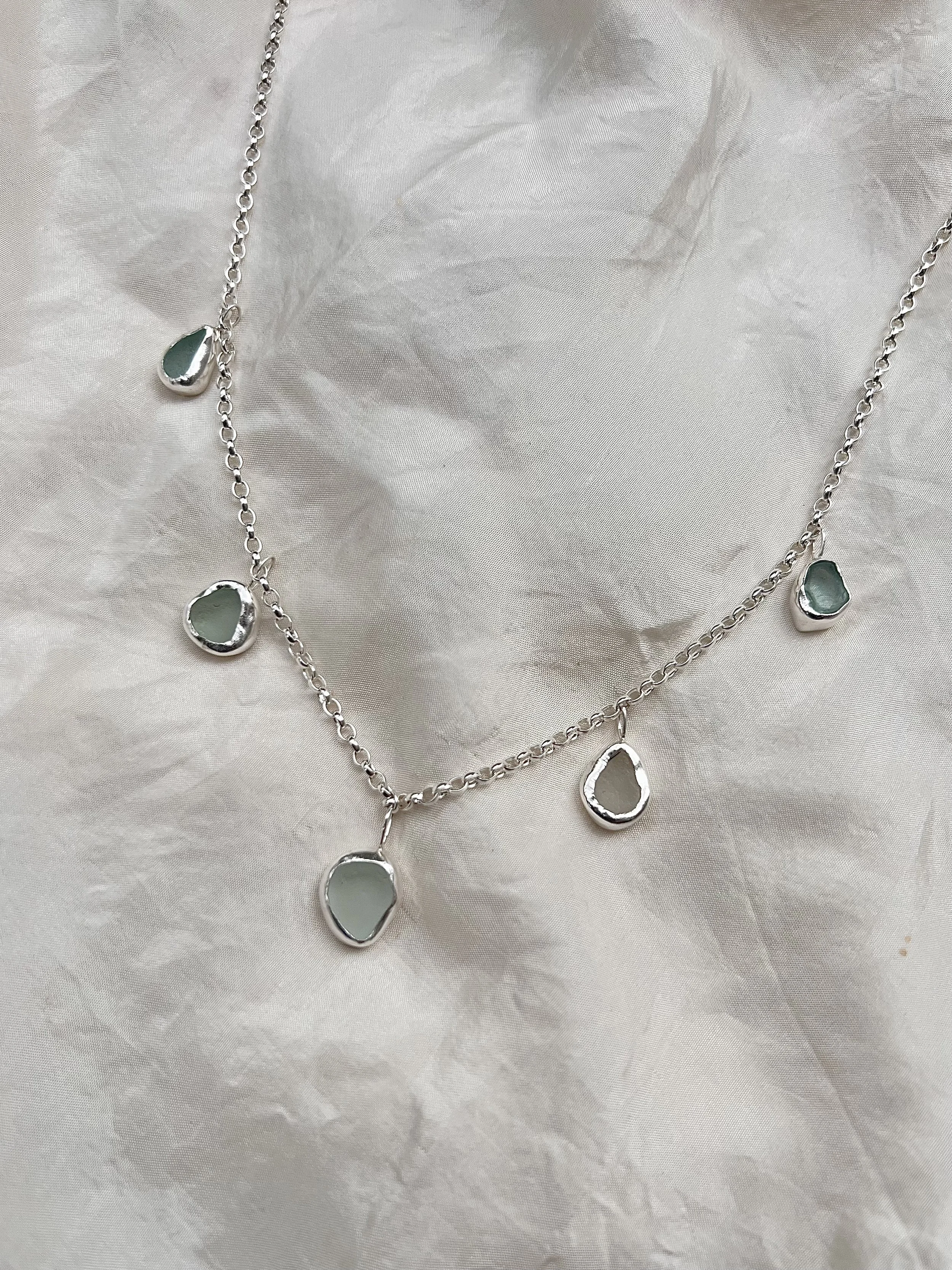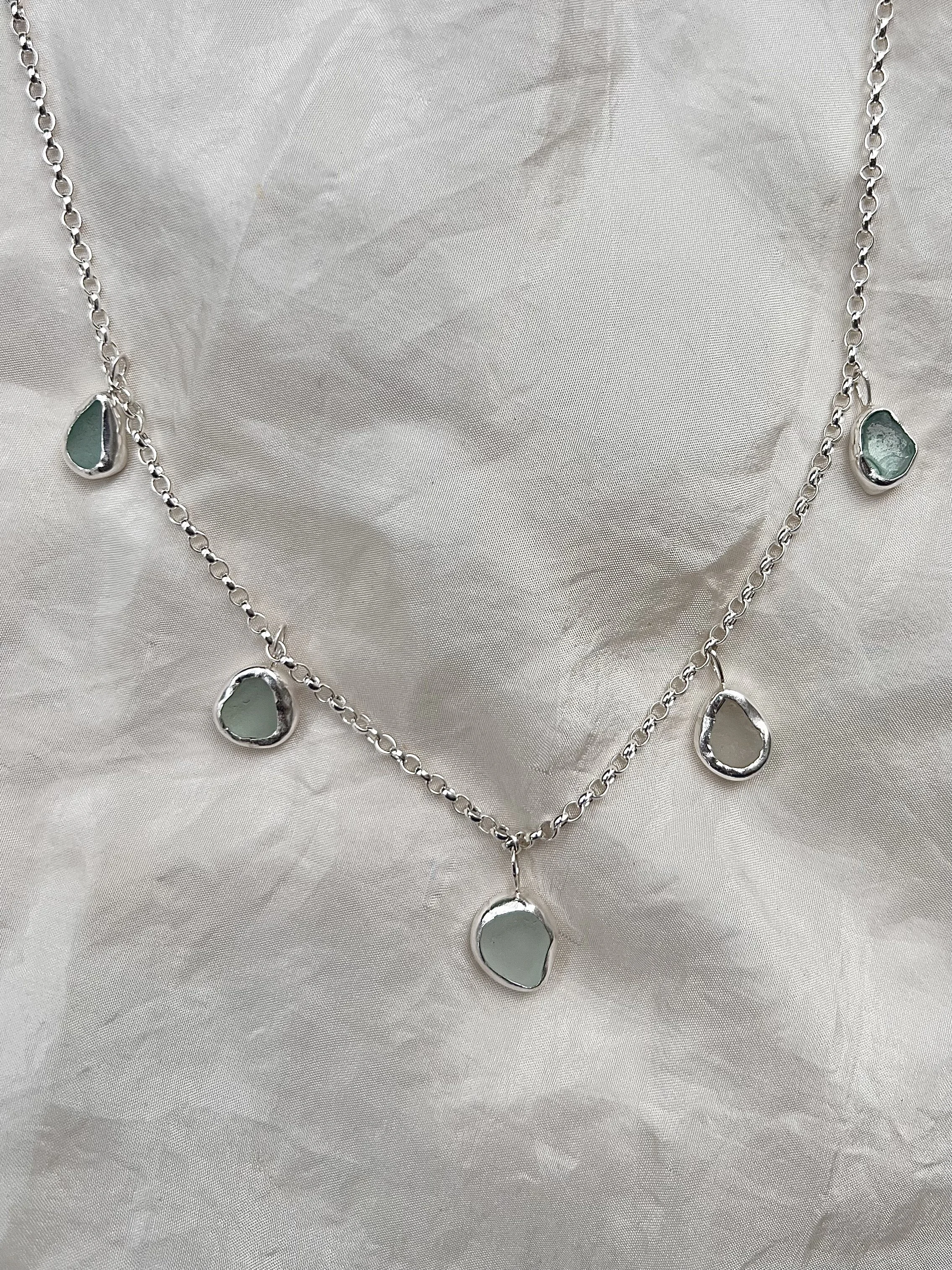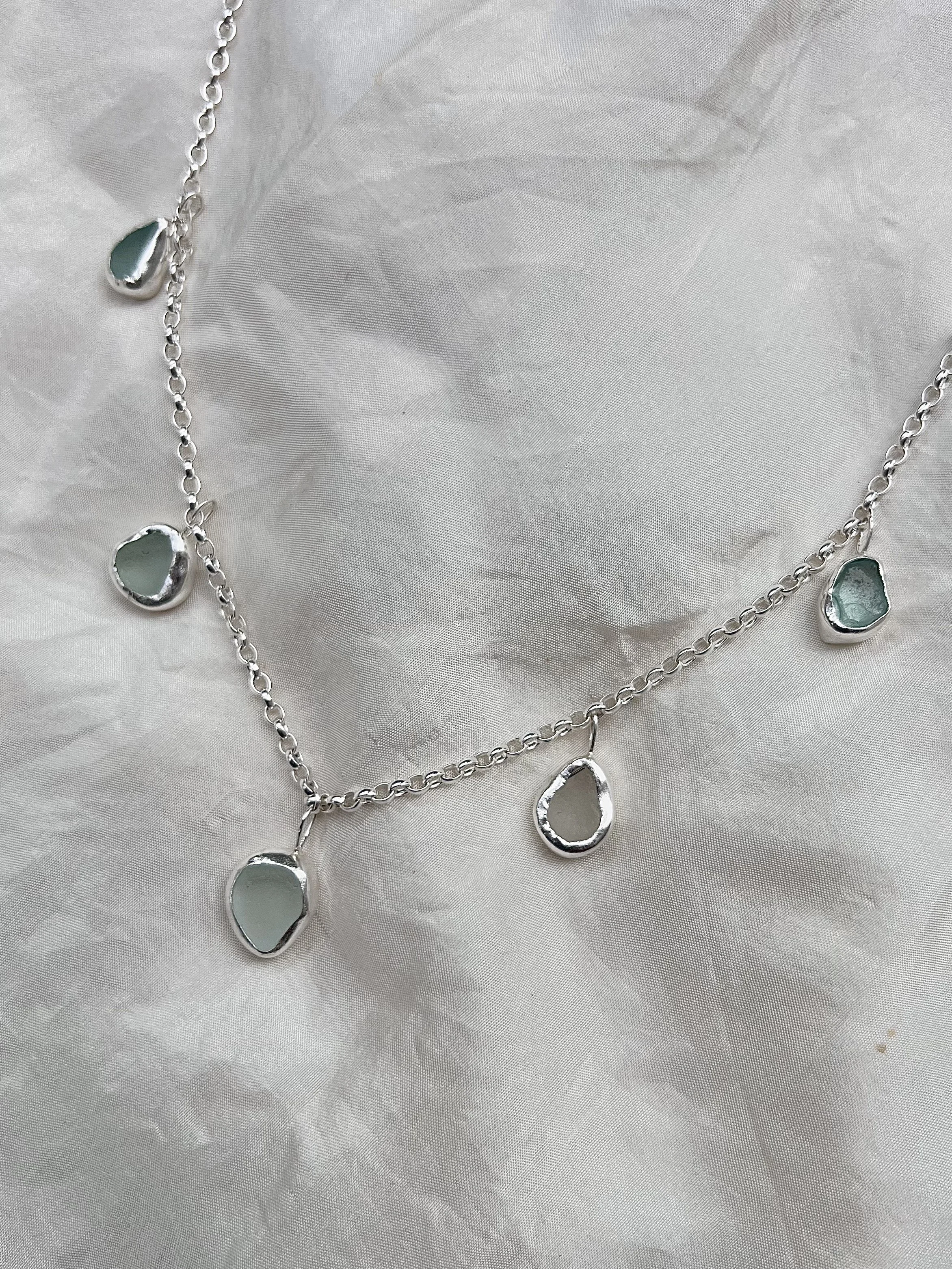 All the jewellery is handmade by myself using glass that’s been handpicked from the beaches of the Jurassic coast, famous for Mary Anning’s fossil findings that date back to the 1800’s.